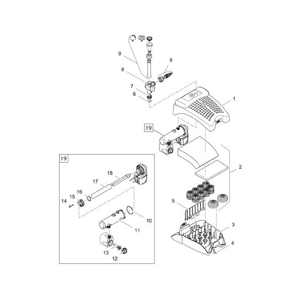 Multifunkční podvodní jednotka s čerpadlem pro vodní hry o výkonu 2.500 l/hod a integrovaným UVC čistícím zařízením