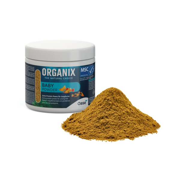 Speciální krmivo pro mladé rybičky ve formě prášku