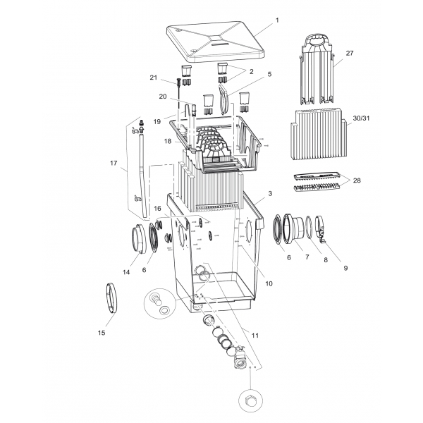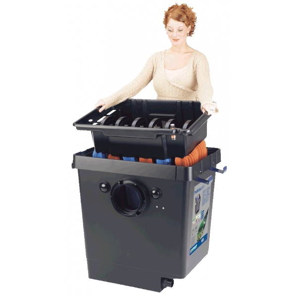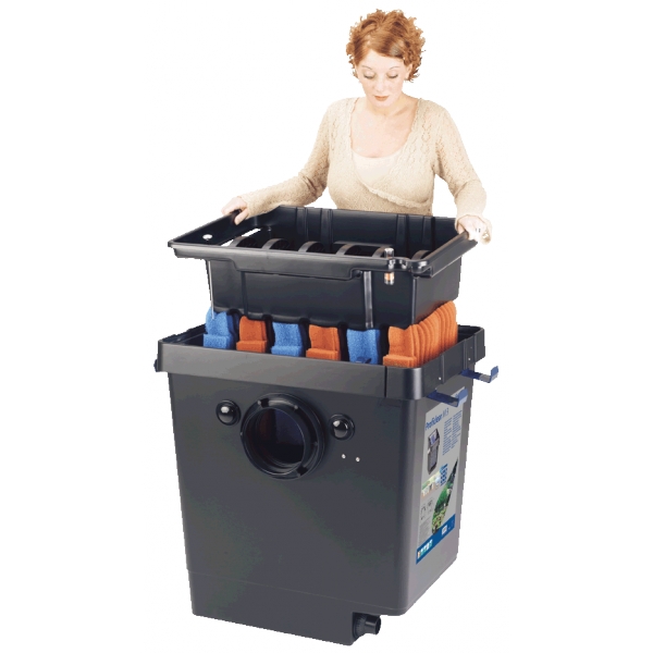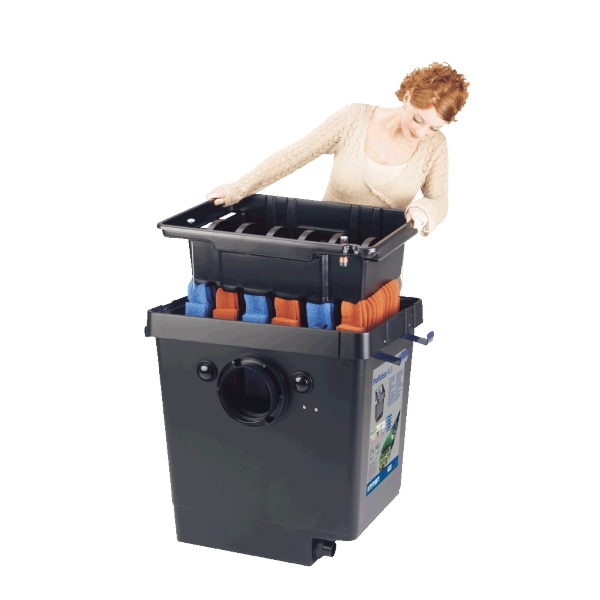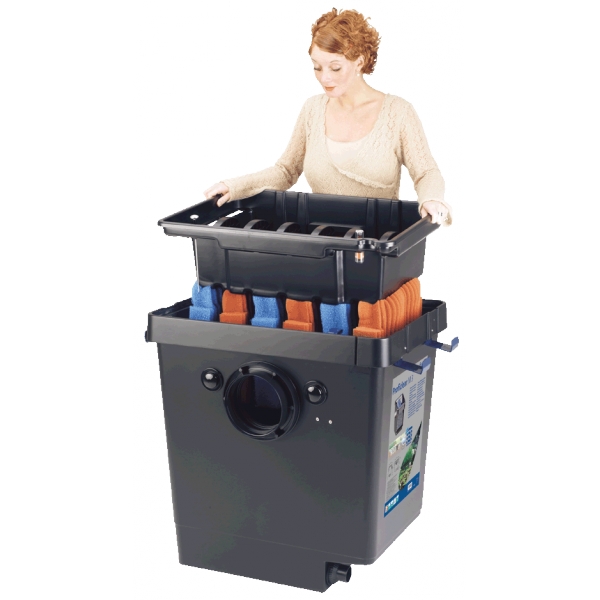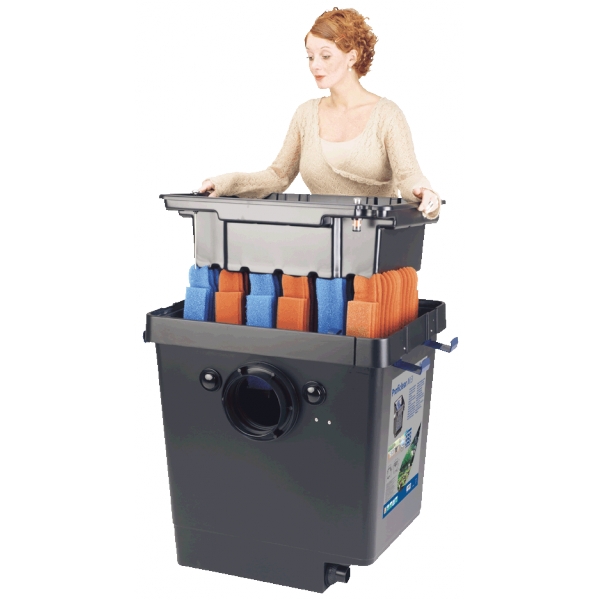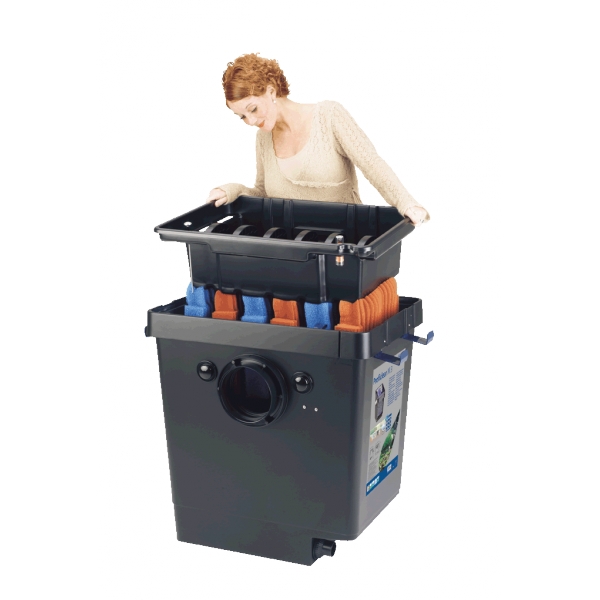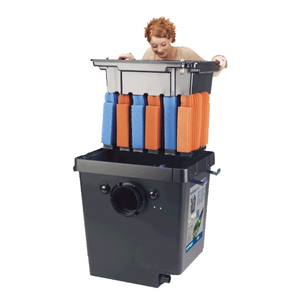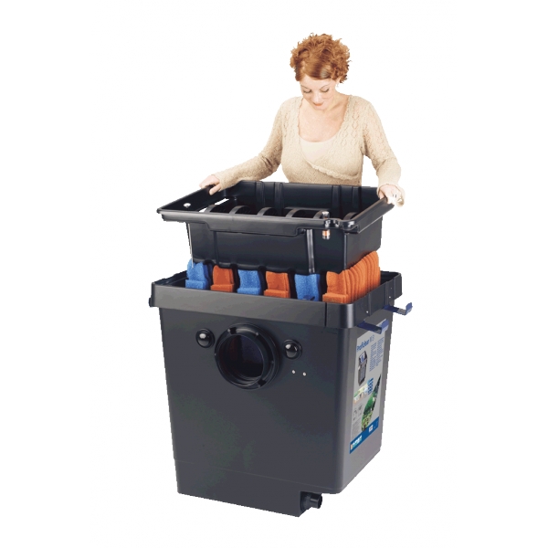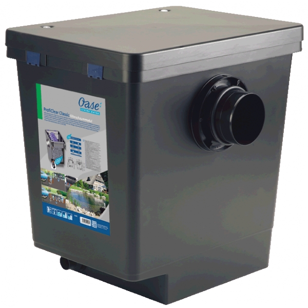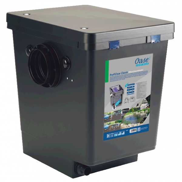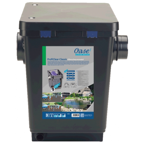 Modul filtrační pěny OASE Proficlear Classic je součástí modulového filtračního systému OASE Proficlear. Modul M3 je vybaven DN 110 vstupem a výstupem a dvěma DN 50 na vstupu. Hrubá a jemná pěna zajišťují optimální jemné vyčištění vody v jezírku. Ve filtračních houbách se vytváří specifická mikroflóra. Z vody v jezírku vytahuje jedovaté škodliviny (amonium, případně amoniak, dusitany). Přípojky k pouzdru se postarají o přívod kyslíku, který je nezbytně žádoucí pro nitrifikační procesy. K čištění jsou pěny jednoduše pomocí čisticí páky stlačovány k mezidnu. Hrubé nečistoty jsou z filtračního systému s podporou proplachovacích trysek odebírány přes uzavírací šoupátko s odtokem pro nečistoty DN 50. Pouzdro o rozměrech 830 x 600 x 820 mm s objemem filtrační pěny 60 l pro maximální průtočné množství dosahující 12.500 l/hod. je vyrobeno z vysoce kvalitního duroplastu. Je možné kombinovat více modulů.
