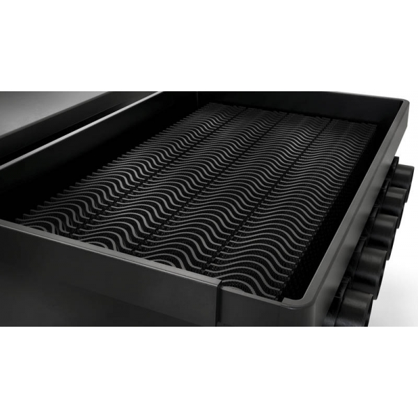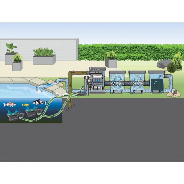 Čtyři filtrační komory, které postarají o profesionálně čistou vodu v jakémkoliv jezírku až 530 m3 velkém. Na vývoji dosud nejlepší filtrační sady se pracovalo tři roky, aby byla zaručena naprosto čistá voda. V první filtrační komoře voda proteče přes filtrační buben s jemnými filtračními síťkami, kde se zachytí většina viditelných nečistot. V dalších dvou nádobách, které jsou naplněny destičkami Oase PondPads dochází k velice efektivnímu rozkladu nečistot a živin. V poslední části vyplněné pěnovým filtračním mediem dochází k zachycení těch nejdrobnějších nešistot, kterým se ještě podařilo uniknout a odchází z ní křišťálově čistá voda.