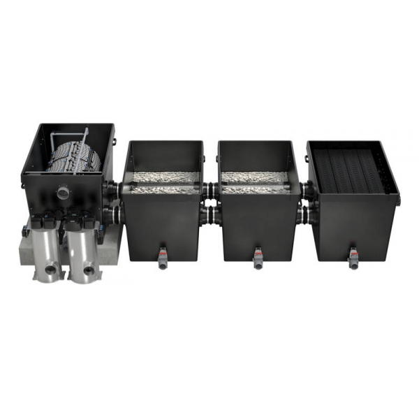 Velká filtrační sestava pro jezírka až 530 m3 se čtyřmi filtračními komorami.