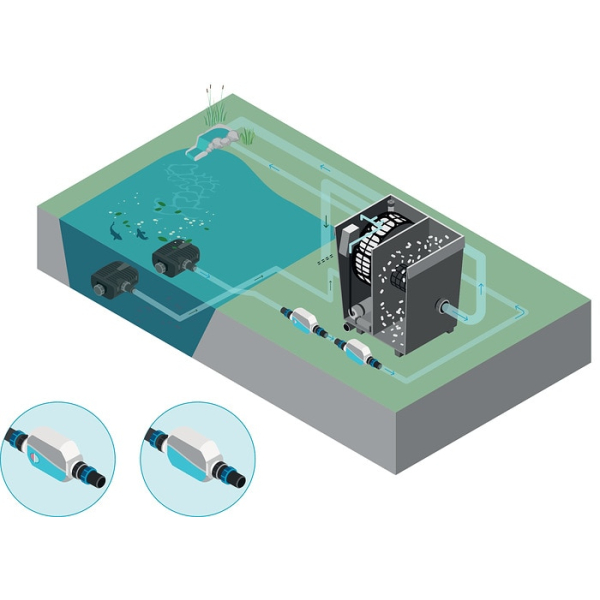 Jistící filtr bránicí kontaminaci při přečerpání kapacity filtru PhosLess Flow 3000 a Phosless Power Flow 3000. Jednoduše ho připevníte na hadici za předřazené filtry a máte jistotu, že žádné fosfáty nepůjdou zpět do jezírka.